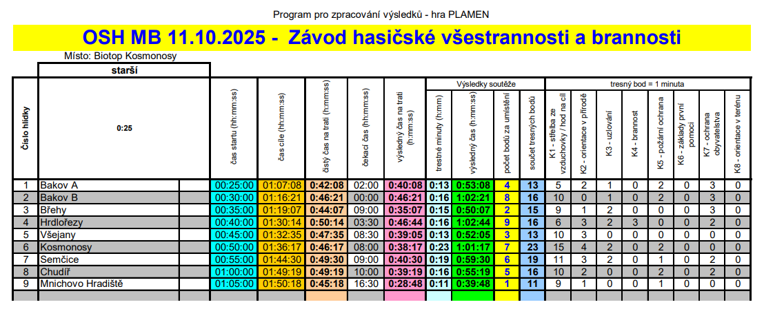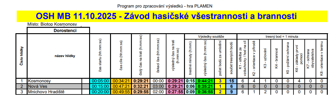 Dne 11.října 2025 se náš oddíl účastnil krajského kola ZHVB v areálu Biotopu Kosmonosy. Náš oddíl do závodu nasadil družstvo dorostenců a starších žáků. Na závodníky čekal okruh dlouhý 2900m na kterém se plnilo 7 stanovišť.
