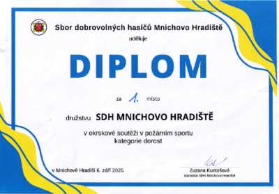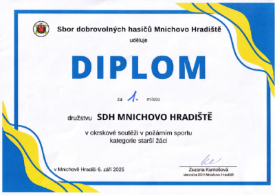 U příležitosti oslav 150. výročí založení sboru v Mnichově Hradišti proběhla okrsková soutěž v požárním útoku na stadionu J.Hrona. Náš sbor reprezentovalo družstvo Mladších a Starších žáků. V kategorii dospělých družstvo dorostu. Dorostenci předvedli svůj druhý start v letošní sezóně a opravdu překvapili. S časem 22:45s. porazili o 1s. družstvo mužů z domácího sboru!