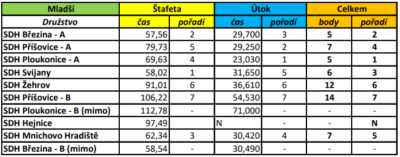 V pátek 23. května proběhl trénink na sobotní soutěž ve Březině. Družstvo mladších trénovalo štafetu a požární útok. Družstvo starších provedlo nácvik ukázek na Jivinský špacír.